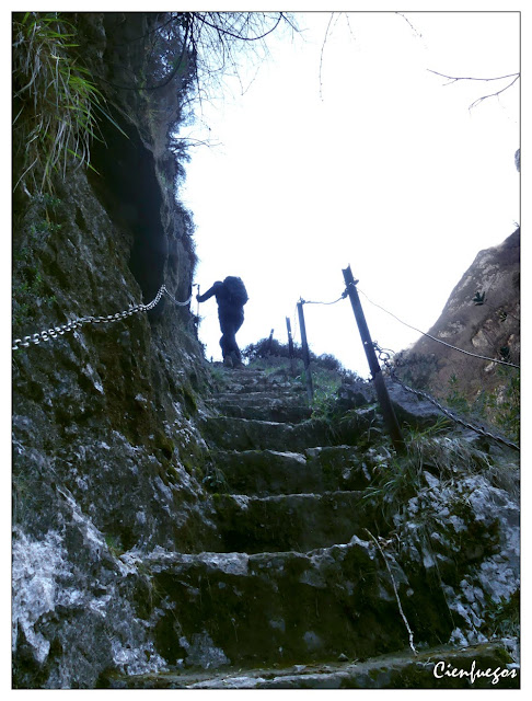 Con una cerrada curva, la senda entra en las Armaduras, donde nos toca ascender un duro repecho gracias a una larga sucesión de escalones.
