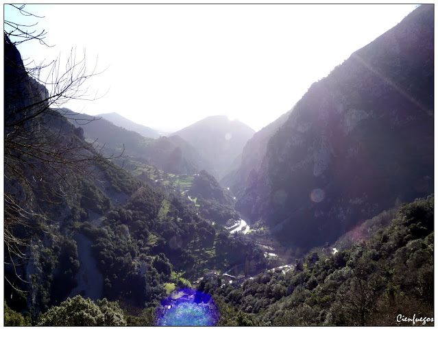Mala luz con el sol enfrente, pero vemos La Hermida ya bastante abajo.