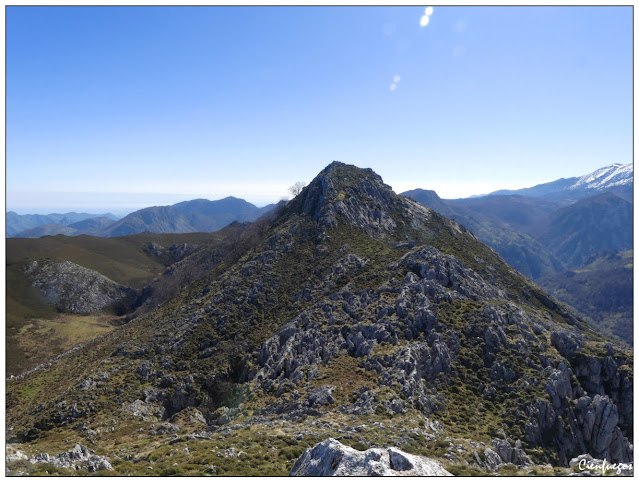 Hacia el oriente corre la sierra pasando por Cabeza Llamedu y Peña Crimienda, aunque en esta ocasión no la recorreríamos por arriba.